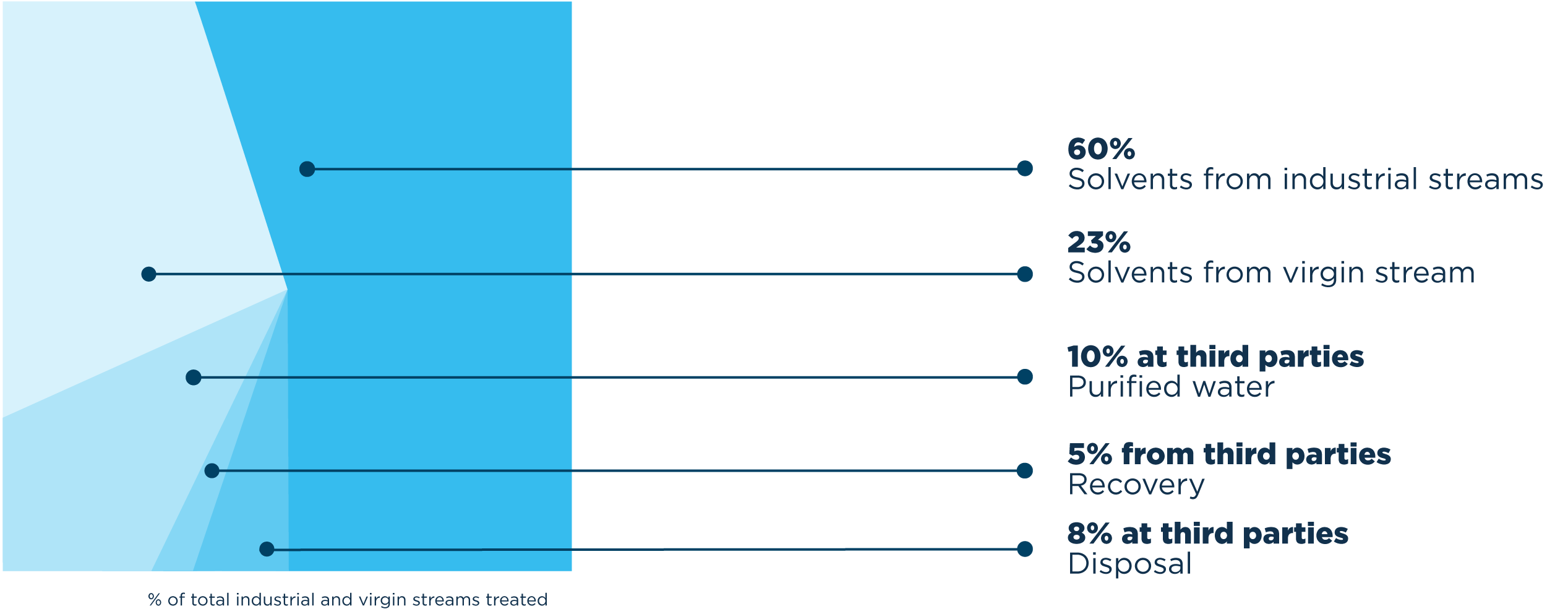Every year, around 90,000 tons of used solvents, mainly from the chemical and pharmaceutical industries, are regenerated or recovered with high industrial yields and quality standards.